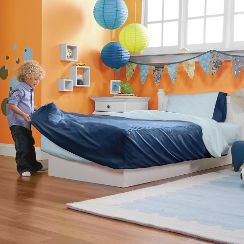 Our clever bedding is super easy to make, but hard for kids to kick off during the night. What's unique: the duvet's fitted bottom corners hug the mattress, so restless sleepers stay warm and rookie bed-makers keep their cool. And there's no loose fabric to get in the way, so it's the perfect bunk bed bedding. Choose Toddler or Twin size, in plush Chenille or soft cotton Jersey. Includes fitted sheet, kids' pillowcase, and duvet (fits our matching Stay-Put Comforter, sold separately). Machine wash. Imported. Designed by OneStepAhead!Great tantrum tamer! Stay-put duvet corners help keep the covers in place at night, keep bedding neater during the day, and make it easier for beginners to make their own beds.