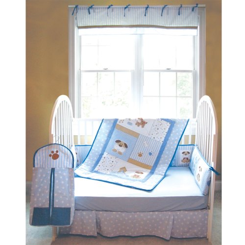 Luvable Friends 6-Piece Puppy Bedding Set will enhance the appearance of your nursery. This set features a cute theme, vibrant colors and a large velour applique to captivate your baby's imagination. Set includes: Comforter, Bumper, Dust Ruffle, Crib Sheet, Valance and Diaper Stacker. Extra soft and gentle. Machine washable.